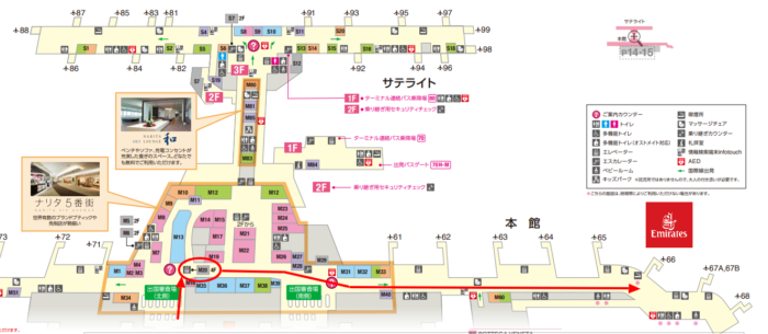 日本ではここ成田の他、羽田と関空に乗り入れているエミレーツ航空ですが、「エミレーツラウンジ」と名前が付いたラウンジが置かれているのは 成田だけ になります。