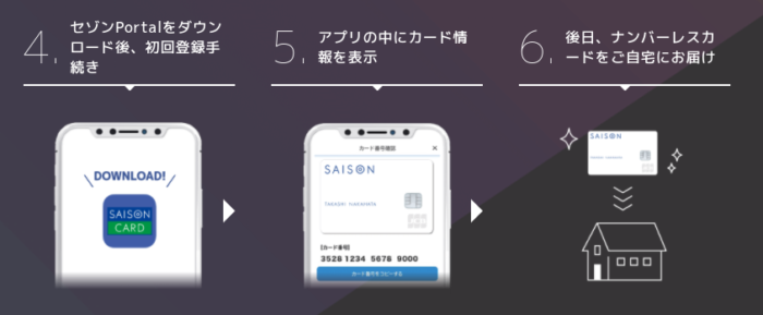 じゃあカード番号はどうなるの?というと、カード番号は申し込み直後からスマホで確認するというスタイル。