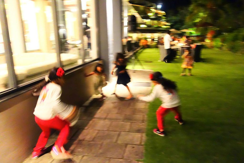 写真がブレブレで見辛いですが、ホテルで隣のテーブルに座ったバーレーンのご家族と仲良くなり、食後にずっと遊んでいました。