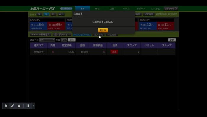 上田ハーローFXでは、正規の取引画面とは別にデモトレードが用意されています。