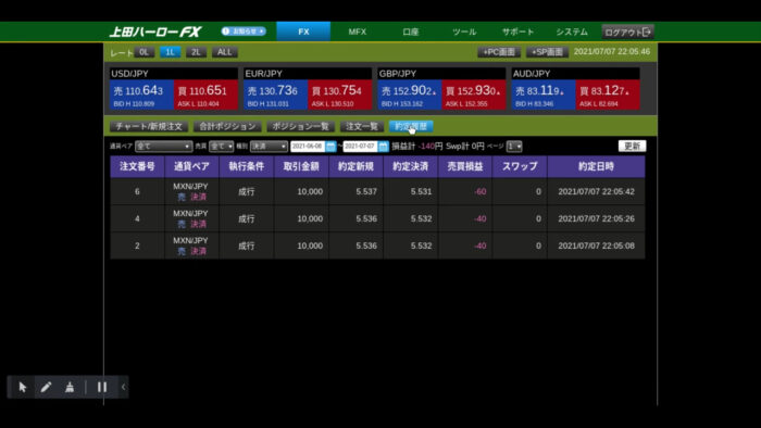 メキシコペソ/円を10,000通貨×3回取引